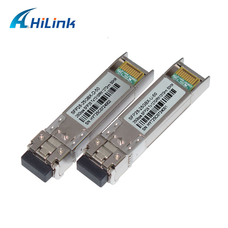 Transceiver mode tunggal seri 25G ini adalah modul berkinerja tinggi dan hemat biaya yang mendukung kecepatan data 25.78Gbps dan jarak transmisi 50km dengan SMF. Modul ini dirancang untuk serat mode tunggal dan beroperasi pada panjang gelombang nominal 1270nm atau 1310nm; bagian pemancar menggunakan EML sumur kuantum ganda, yang sesuai dengan laser kelas 1 sesuai dengan Standar Keselamatan Internasional IEC-60825.